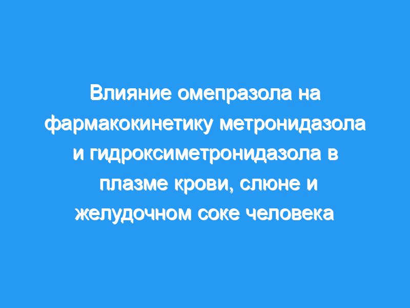 Оценить влияние омепразола на фармакокинетику метронидазола и гидроксиметронидазола в плазме, желудочном соке и слюне после внутривенной инфузии или перорального приема метронидазола. Восемь добровольцев получали однократные дозы метронидазола (400 мг) внутривенно и перорально, одновременно принимая плацебо или омепразол (40 мг два раза в день в течение 5 дней) в рандомизированном 4-стороннем перекрестном исследовании. Концентрации метронидазола и гидроксиметронидазола в образцах плазмы, слюны и желудочного сока определяли методом h.p.l.c. Рассчитывали фармакокинетические параметры метронидазола и гидроксиметронидазола, а также оценивали значимость средних различий в параметрах между одновременным приемом омепразола и плацебо с использованием двухвалентного парного t-теста.