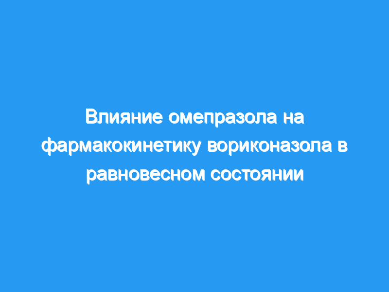 Вориконазол, новое триазольное противогрибковое средство, метаболизируется изоферментами цитохрома Р450 CYP2C19, CYP2C9 и в меньшей степени CYP3A4. Омепразол, ингибитор протонной помпы, широко используемый для лечения язв желудка и двенадцатиперстной кишки, преимущественно метаболизируется CYP2C19 и CYP3A4. Целью данного исследования было определение влияния омепразола на фармакокинетику вориконазола в стационарном состоянии. Вторичной целью было охарактеризовать фармакокинетический профиль режима пероральной нагрузочной дозы 400 мг вориконазола два раза в день на 1-й день.