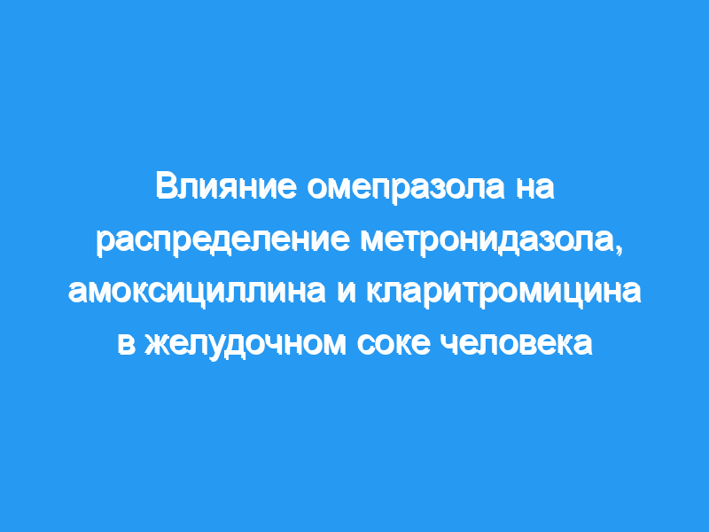 В группе омепразола по сравнению с группой плацебо средние максимальные концентрации антибиотика в желудочном соке (в миллиграммах на литр) метронидазола снизились с 33,6 до 8,3 (Р = 0,0001), тогда как у кларитромицин не изменился, а амоксициллин увеличился с 0,13 до 0,68 (Р = 0,02). Омепразол увеличивал концентрацию метронидазола в слюне (Р = 0,02), но не оказывал влияния на концентрацию кларитромицина (амоксициллин в слюне не обнаруживался).