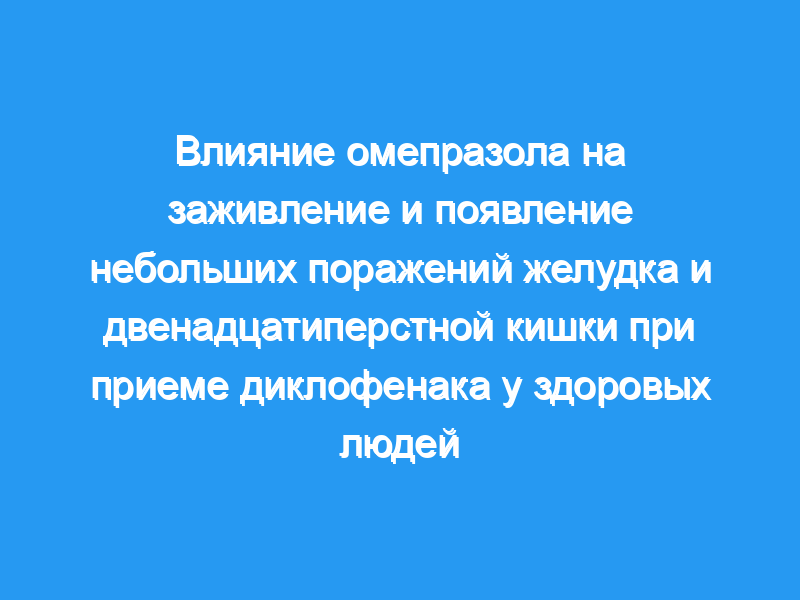 В двойном слепом, двойном фиктивном, плацебо-контролируемом перекрестном исследовании 12 здоровых добровольцев получали последовательные 2-недельные курсы омепразола (40 мг внутривенно) и плацебо, в случайном порядке, с промежуточным 4-недельным периодом вымывания, диклофенак (50 мг внутривенно) вводили в течение второй недели каждого курса. Было проведено пять эндоскопий, одна в начале, а другие до и после каждого курса диклофенака. Биопсии были взяты из эндоскопически нормальной слизистой оболочки тела, антрального отдела и двенадцатиперстной кишки, а также из любого нового поражения слизистой оболочки, которое развилось после приема диклофенака. Места биопсии, взятые перед каждым курсом диклофенака, оценивались эндоскопически после каждого курса для оценки степени заживления в соответствии с заранее определенной шкалой оценки заживления.