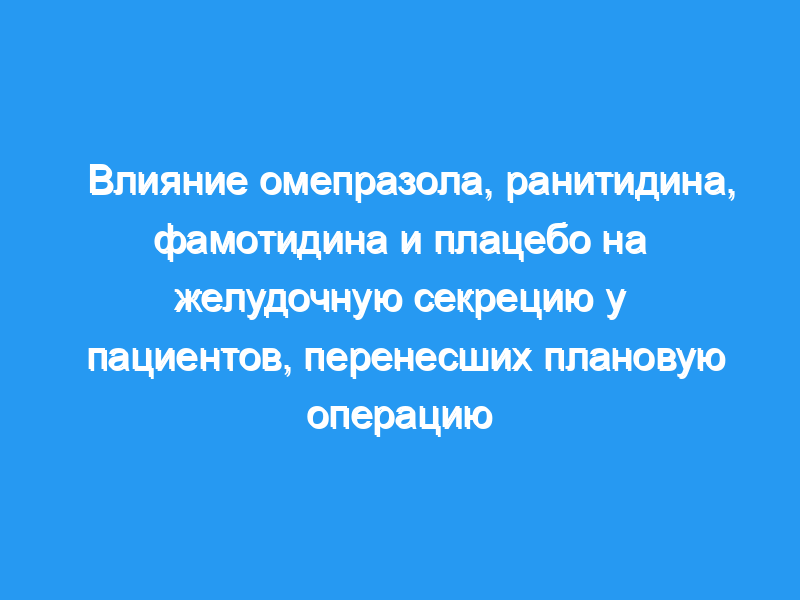 За три часа до операции пациенты получали перорально омепразол 40 мг, ранитидин 150 мг, фамотидин 40 мг или плацебо.