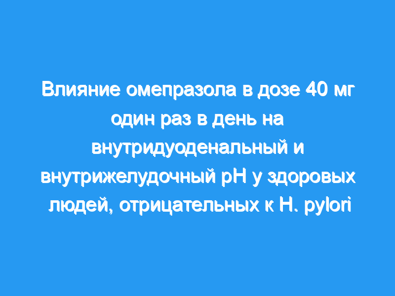 Отсутствует информация о влиянии омепразола или других антисекреторных препаратов на внутридуоденальный рН. Целью исследования было документировать изменение во времени внутридуоденального рН в течение 24-часового периода и одновременно изучить влияние омепразола в дозе 40 мг один раз в день на внутрижелудочный и внутридуоденальный рН у здоровых H. pylori-отрицательных пациентов.