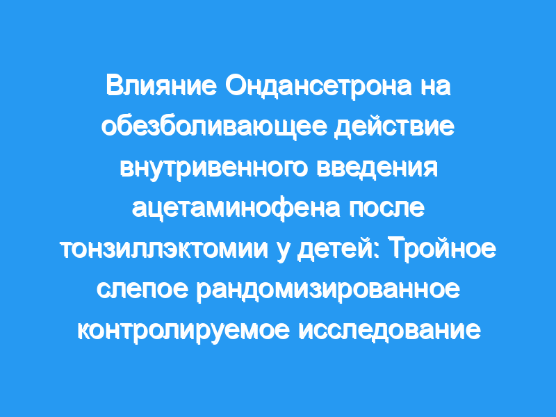 Сильная боль, тошнота и рвота после операции тонзиллэктомии относятся к числу проблем, которые не только влияют на удовлетворенность пациента, но и могут привести к осложнениям и задержке выписки пациента. Это исследование было проведено для оценки влияния внутривенного введения ондансетрона на обезболивающее действие внутривенного введения ацетаминофена после тонзиллэктомии у детей. Материалы и методы. Это рандомизированное контролируемое исследование было проведено на 53 детях в возрасте от 3 до 12 лет, которые были направлены в больницу Бесат Хамадан, Иран, для тонзиллэктомии. Пациенты были случайным образом распределены на две группы. Группа вмешательства (I) получала внутривенно ацетаминофен плюс 0,1 мг/кг ондансетрона внутривенно, в то время как контрольная группа (C) получала внутривенно ацетаминофен плюс 2 мл физиологического раствора внутривенно. Тяжесть послеоперационной боли оценивали с помощью шкалы боли Детской больницы Восточного Онтарио (CHEOPS). Частота тошноты, рвоты и потребности в анальгетиках оценивалась и регистрировалась четыре раза, в отделении реабилитации, через 6, 12 и 24 часа после операции. Анализ данных проводился с 95%-ным уровнем достоверности с использованием программного обеспечения statistical package for social sciences (SPSS) версии 21.