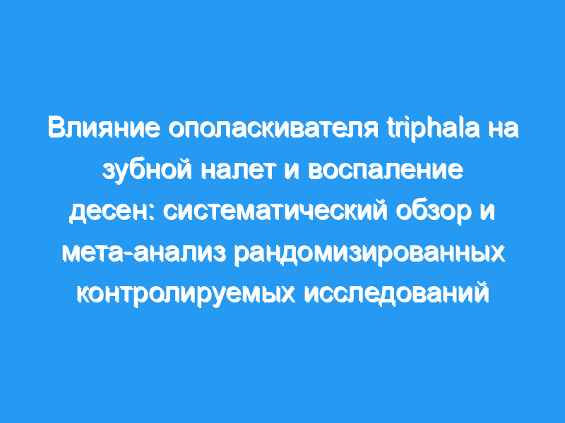 Жидкость для полоскания рта Triphala, по-видимому, значительно улучшает клинические показатели воспаления десен при гингивите, вызванном зубным налетом, с такой же клинической эффективностью, как и CHX-MW. TRP является экономически эффективной альтернативой и легко доступна с ограниченными побочными эффектами на ткани пародонта.