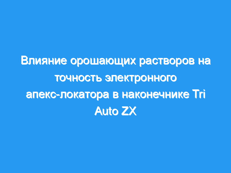 Для определения влияния различных ирригационных растворов на точность электронного апекс-локатора в наконечнике Tri Auto ZX. Методика: Было использовано сто сорок зубов с одиночными каналами и зрелыми верхушками, запланированных к удалению либо по пародонтальным, либо по протезным причинам у 76 пациентов. После получения информированного письменного согласия была проведена местная анестезия, подготовлены полости доступа и удалена пульпозная ткань. Затем зубы были случайным образом разделены на семь групп в соответствии с используемыми ирригационными растворами. Измерения длины корневого канала проводили с помощью наконечника Tri Auto ZX с функцией автоматического реверса в присутствии одного или другого из следующих растворов: 0,9% физиологического раствора, 2,5% NaOCl, 3% H(2)O(2), 0,2% хлоргексидина, 17% ЭДТА, ультракаин D-S или при отсутствии оросительного раствора (контроль). Файлы были иммобилизованы в полости доступа композитной смолой. После удаления обнажались апикальные области зубов, а кончики пилок исследовались под стереомикроскопом. Расстояния между кончиками напильников и апикальным сужением измеряли (мм) и анализировали с использованием одностороннего anova и post hoc теста Тьюки.