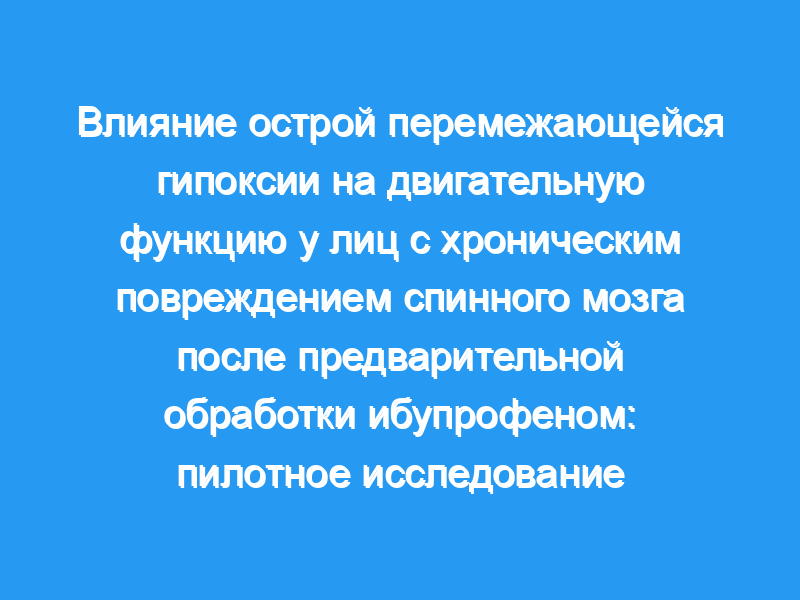 Острая перемежающаяся гипоксия (AIH) улучшает двигательную функцию нижних конечностей у людей с хроническим неполным повреждением спинного мозга (SCI). AIH-индуцированная пластичность позвоночника ингибируется системным воспалением на животных моделях. Поскольку SCI часто ассоциируется с системным воспалением у людей, мы проверили гипотезу о том, что предварительная обработка противовоспалительным средством ибупрофеном усиливает эффекты AIH.