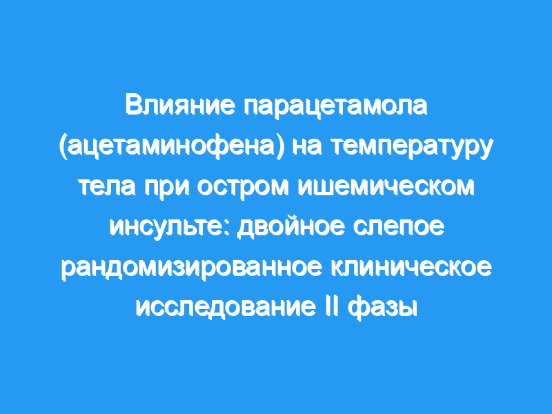 Лечение ежедневной дозой 6000 мг ацетаминофена может привести к небольшому, но потенциально полезному снижению температуры тела вскоре после ишемического инсульта, даже у нормотермических и субфебрильных пациентов. Дальнейшие исследования должны определить, является ли этот эффект воспроизводимым и приводит ли раннее снижение температуры тела к улучшению результата.