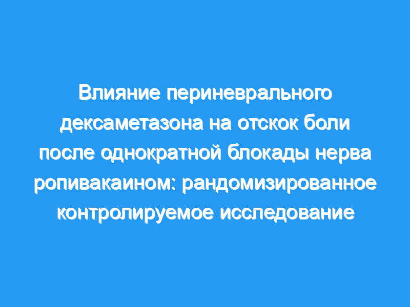 Отскок боли после однократной блокады нерва ставит под сомнение реальную пользу этой техники. Мы стремились выяснить, уменьшало ли добавление дексаметазона в периневральную область частоту болей после однократной блокады нерва.