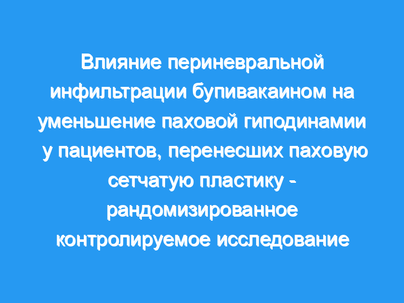 Паходиния после паховой сетчатой пластики является заметным осложнением с частотой 13-37%. Мы хотели определить, уменьшит ли периневральная инфильтрация бупивакаином, введенным интраоперационно, частоту возникновения непосредственной послеоперационной боли и паховой боли. Методология: Мы провели однослепое рандомизированное контролируемое исследование, в котором приняли участие 100 пациентов с паховой грыжей. Пациенты контрольной группы получали только спинальную анестезию. Группа вмешательства получала периневральную инфильтрацию бупивакаином в дополнение к спинальной анестезии. Интраоперационно идентифицировали подвздошно-язычную, подвздошно-подложечную и генитальную ветви генитально-бедренного нерва и периневрально вводили 2 мл 0,5% бупивакаина вдоль этих идентифицированных нервов. Регистрировали наличие паховой боли, оценки боли в непосредственном послеоперационном периоде с использованием шкалы боли Wong-Baker faces, продолжительность приема анальгетиков, использование дополнительных анальгетиков вместе с таблеткой парацетамола в дозе 500 мг и продолжительность пребывания в больнице между группами.