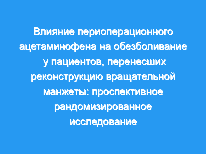 Ограничение использования опиоидов в периоперационном обезболивании в настоящее время является важным направлением в ортопедической хирургии. Способность ацетаминофена снижать послеоперационное потребление опиоидов при обеспечении приемлемого обезболивания не была тщательно исследована у пациентов, перенесших реконструкцию вращательной манжеты (RCR).