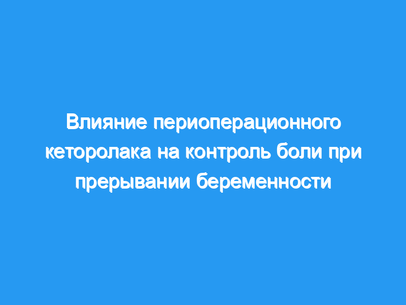 Периоперационный кеторолак оказывает такое же влияние на послеоперационную боль, как определено ВАШ, как и плацебо. Применение кеторолака в дозе 30 мг не может быть рекомендовано для лучшего контроля боли пациенткам, перенесшим прерывание беременности в первом триместре путем аспирационного выскабливания. Единственным положительным эффектом применения кеторолака по сравнению с плацебо было сокращение применения ацетаминофена. Применение кеторолака, по-видимому, не приводит к изменению кровопотери в операционной или в течение 1-го послеоперационного дня по сравнению с плацебо.