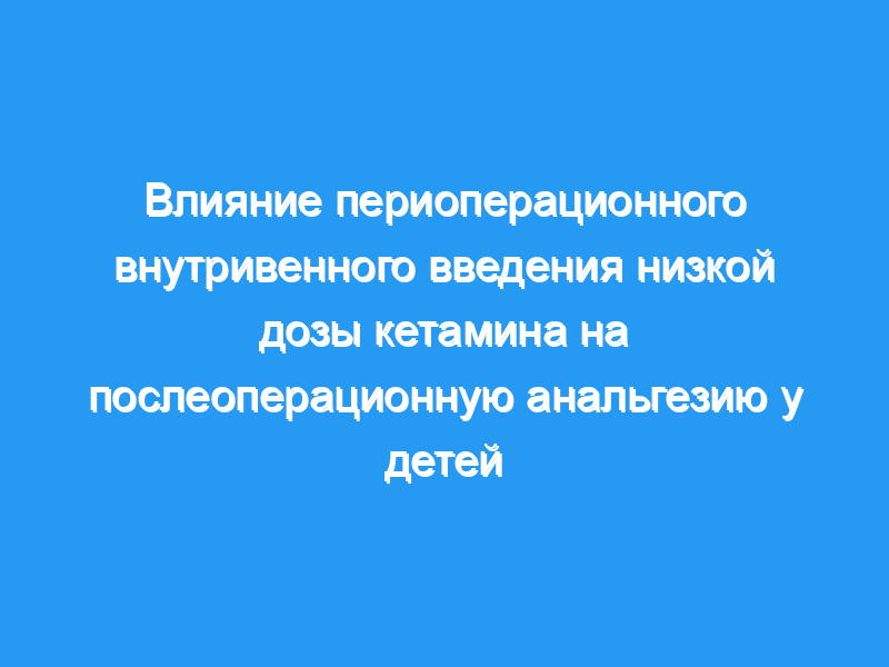 Низкая доза кетамина уменьшает послеоперационную боль и потребление опиоидов в исследованиях у взрослых. Однако существует лишь несколько данных с противоречивыми результатами в педиатрической популяции. Целью этого рандомизированного контролируемого исследования была оценка использования низких доз внутривенного кетамина при послеоперационной боли у детей после операции на нижней части тела.