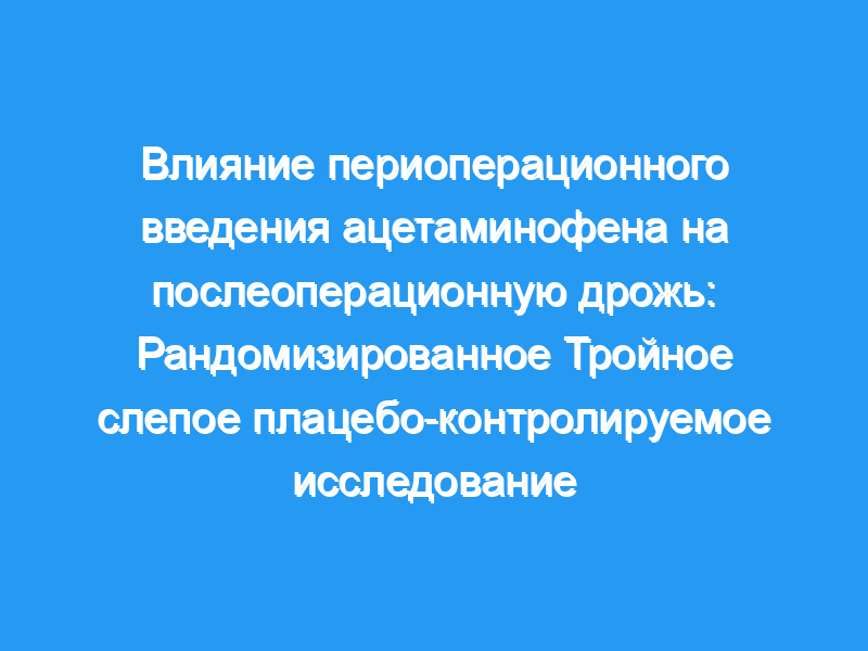 В этом рандомизированном, тройном слепом, плацебо-контролируемом исследовании мы проверили гипотезу о том, что периоперационное введение ацетаминофена оказывает профилактическое действие на послеоперационную дрожь. Сорок пять женщин, которым была назначена гинекологическая лапаротомия, были рандомизированы в группы, принимавшие ацетаминофен или плацебо. После введения общей анестезии тестируемый препарат (ацетаминофен 15 мг/кг) или плацебо (0,9% физиологический раствор) вводили внутривенно в течение 15 минут. Основным показателем результата была частота сильной послеоперационной дрожи (т.е. оценка дрожи >,2) в отделении постанестезического ухода, где пациенты оставались в течение 30 минут после выхода из наркоза. Для вторичных исходов регистрировали основную температуру тела (BT) на лбу непосредственно перед введением анестезии (время 0 [T0]), в начале операции (время 1 [T1]), в конце операции (время 2 [T2]), в начале послеоперационного наблюдения в отделении постанестезической помощи (время 3 [T3]) и через 30 минут после T3 (время 4 [T4]). Через 1 час после T4 (т.е. время 5 [T5]) регистрировали BT из подмышечной впадины (BTA). Первичный результат анализировали с помощью χ-теста. BT, записанный на лбу (BTF), и BTA анализировали с использованием 2-стороннего дисперсионного анализа с повторными измерениями (ANOVA) и t-критерия с 2 выборками соответственно. Для всех сравнений значение P <,0,05 считалось статистически значимым.