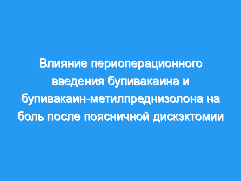 Все 4 группы, получавшие бупивакаин или бупивакаин-метилпреднизолон (путем превентивной или предварительной инфильтрации раны), показали значительно лучшие результаты, чем контрольная группа по большинству параметров. Группы, получавшие лечение, имели более низкую потребность в парентеральных опиоидах после операции, меньшую частоту тошноты и более короткое пребывание в больнице. Кроме того, данные указывают на то, что, по сравнению с инфильтрацией этих препаратов при закрытии раны, упреждающая инъекция бупивакаина или бупивакаин-метилпреднизолона в мышцу вблизи места операции обеспечивает более эффективную анальгезию после поясничной дискэктомии.