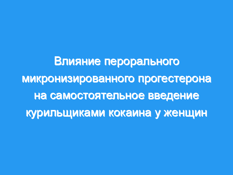 Однако, основываясь на предыдущей литературе, необходимы дальнейшие исследования, оценивающие роль перорального прогестерона для лечения кокаиновой зависимости у женщин.