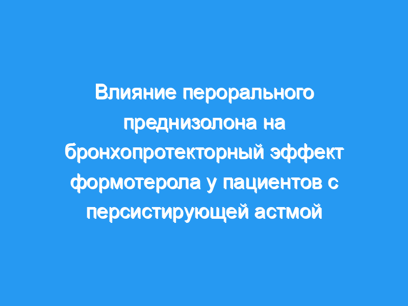 Это изменение не отличалось между группами (p >, 0,4). В заключение, бронхопротекторный эффект формотерола не зависит от 1-недельного лечения преднизолоном у пациентов с астмой, которые регулярно используют ингаляционные кортикостероиды и бета2-агонисты длительного действия.