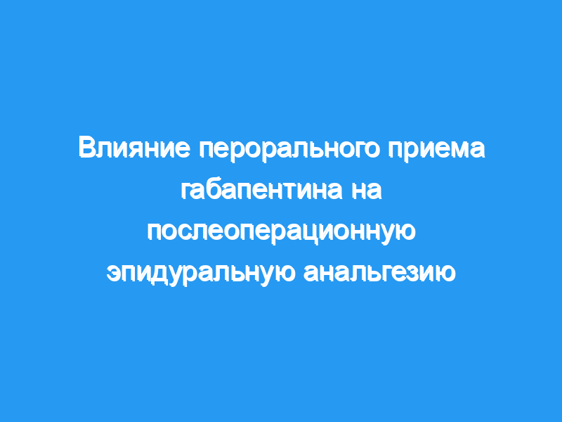 Габапентин успешно используется в качестве неопиоидного анальгетического вспомогательного средства для послеоперационного обезболивания. Мы предположили, что габапентин может быть полезным адъювантом для послеоперационной анальгезии, обеспечиваемой контролируемой пациентом эпидуральной анальгезией (PCEA).