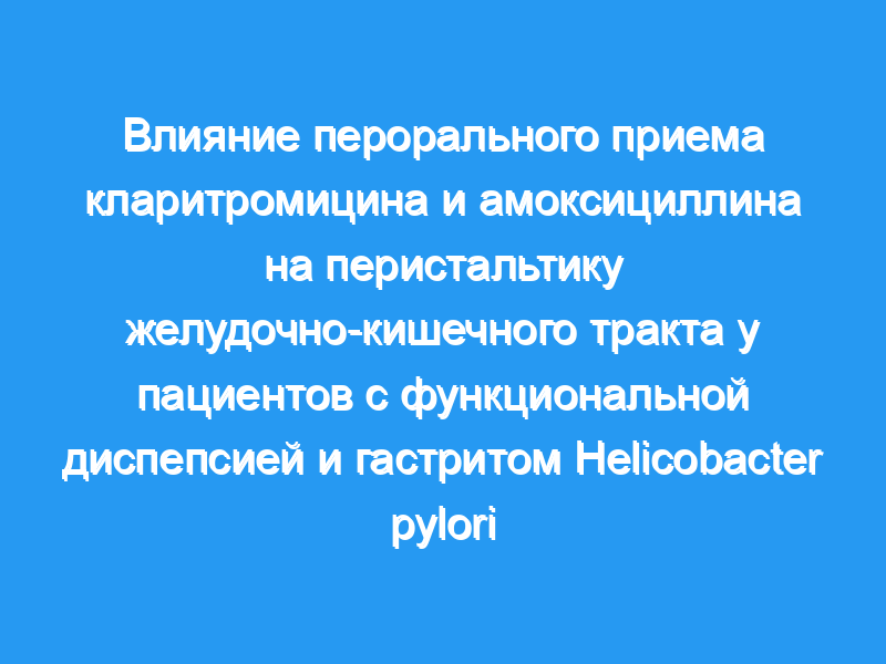 Кларитромицин и амоксициллин являются антибиотиками, обычно используемыми совместно для эрадикации Helicobacter pylori. Поскольку это лечение, которое длится 1-2 недели, часто сопровождается желудочно-кишечными симптомами, мы исследовали влияние этих антибиотиков на перистальтику желудочно-кишечного тракта. Пациенты и методы: Гастродуоденальную моторику регистрировали у 14 пациентов с функциональной диспепсией и гастритом H. pylori с помощью низкоэффективной манометрической системы с четырьмя портами регистрации в желудке и четырьмя в двенадцатиперстной кишке. Две таблетки кларитромицина по 250 мг (семь пациентов, группа кларитромицина) или одну таблетку амоксициллина по 1 г (семь пациентов, группа амоксициллина), измельченные и растворенные в 20 мл воды, давали случайным образом и двойным слепым способом через 30 мин после окончания первого фронта активности (ФП) пациента. мигрирующий двигательный комплекс (MMC) или, при отсутствии AFs, по крайней мере, после 200 минут записи. Запись продолжалась до тех пор, пока в течение последующих 200 минут не наблюдалась автофокусировка.
