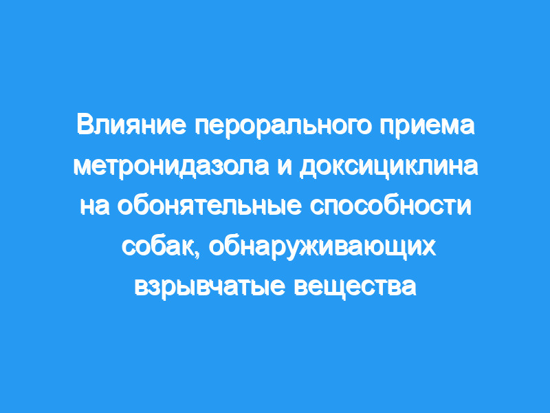 ЦЕЛЬ: определить влияние перорального введения метронидазола или доксициклина на обонятельную функцию у собак, обнаруживающих взрывчатые вещества (ED).