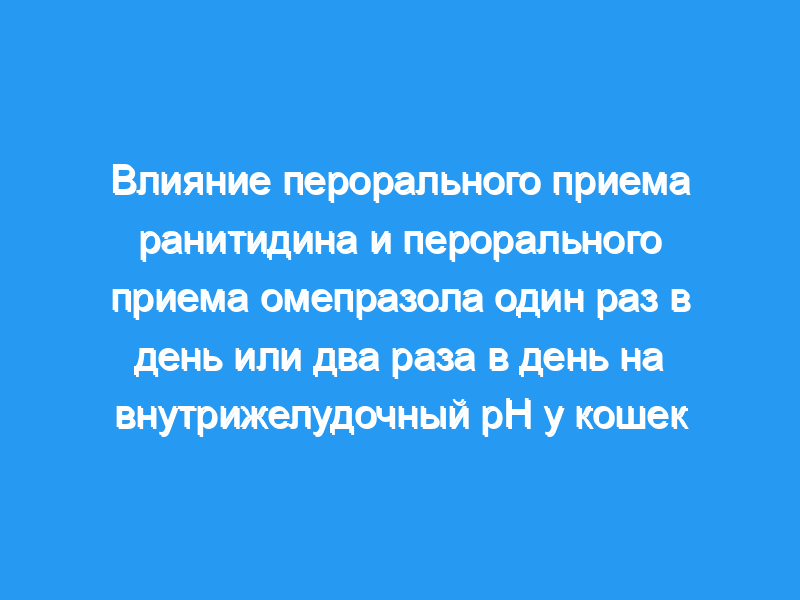 Средний ± SD процент времени, когда внутрижелудочный рН составлял ≥3 и ≥4, составил 67,0 ± 24,0% и 54,6 ± 26,4% при приеме омепразола дважды в день, 24,4 ± 22,8% и 16,8 ± 19,3% при приеме омепразола один раз в день, 16,5 ± 9,0% и 9,6 ± 5,9% при приеме ранитидина и 9,4 ± 8,0% и 7,0 ± 6,6% при приеме плацебо. Лечение омепразолом два раза в день значительно увеличивало внутрижелудочный рН, тогда как рН после однократного ежедневного приема омепразола и ранитидина не отличался от такового у кошек, получавших плацебо. Заключение и клиническая значимость: Только омепразол, назначаемый дважды в день, значительно подавлял кислотность желудка у здоровых кошек, в то время как омепразол, назначаемый один раз в день, и стандартные дозы ранитидина не были эффективными средствами для подавления кислотности у кошек.