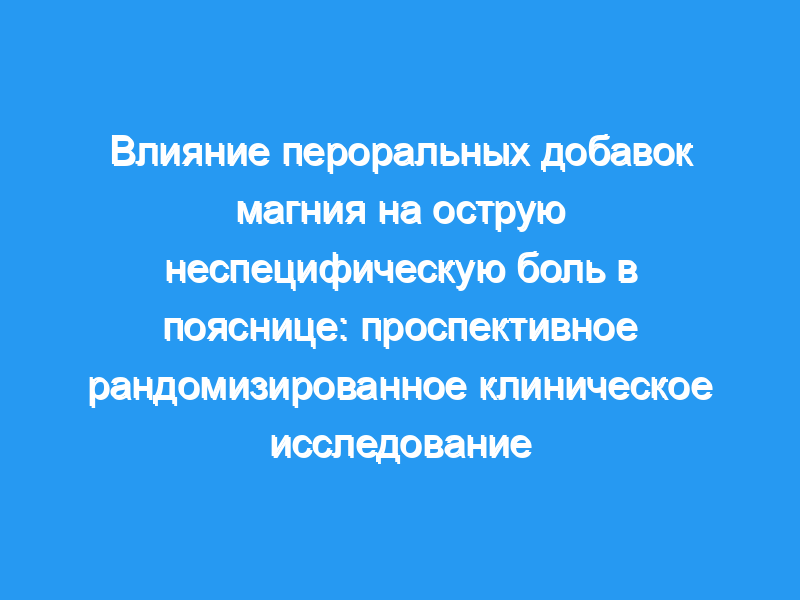 Мы стремились исследовать влияние пероральных добавок магния при острой боли в пояснице.