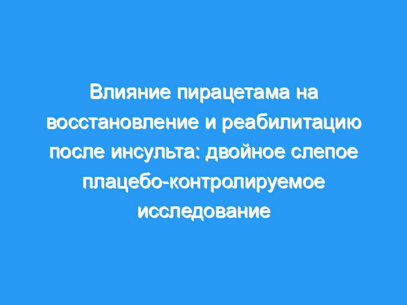 Мы показали улучшение афазии у пациентов, проходящих реабилитацию после инсульта, после 12 недель лечения пирацетамом, что требует подтверждения в дальнейших исследованиях.