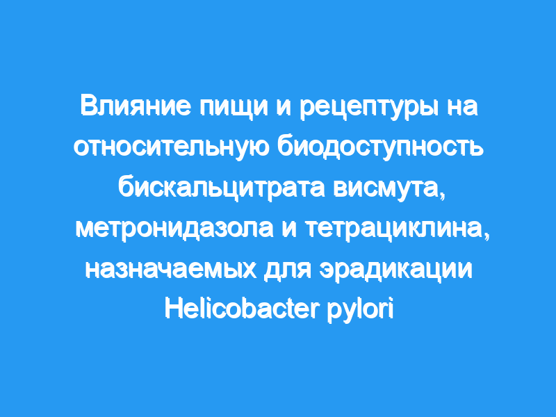 Оценить влияние пищи и рецептуры на фармакокинетику бискальцитрата висмута, метронидазола и тетрациклина в сочетании в новой одноразовой капсуле 3 в 1 (BMT) для эрадикации Helicobacter pylori.