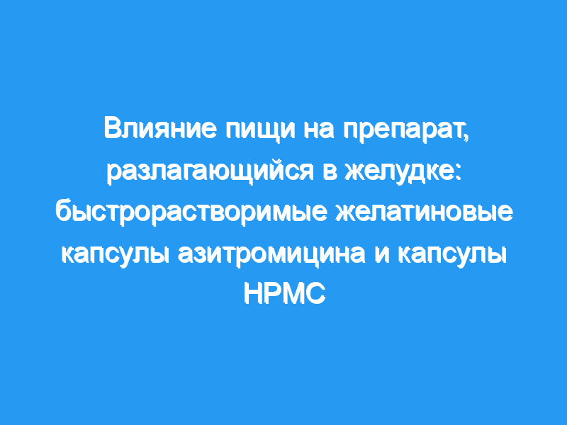Взаимодействие желатина азитромицина и капсул HPMC с пищей приводит к замедлению распада in vitro и снижению биодоступности in vivo. Одновременное измерение уровня азитромицина в сыворотке крови и продукта кислотного распада DCA показывает, что потеря биодоступности азитромицина в сытом состоянии в значительной степени (и, вероятно, полностью) обусловлена деградацией DCA в желудке. Капсулы могут обеспечить полезную и элегантную лекарственную форму почти для всех лекарств, но могут привести к отрицательному пищевому эффекту для таких кислотостойких препаратов, как азитромицин.