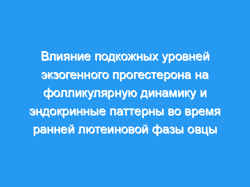 9,4+/-1,0, P<, or =0,02). Настоящее исследование подтверждает, что самый большой фолликул волны 1 доминирует у овцы и что сублютеальные концентрации прогестерона могут продлить ее продолжительность жизни и продлить это доминирование.