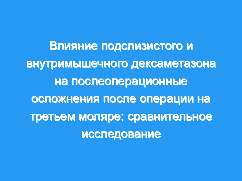 Дексаметазон в дозе 4 мг, вводимый подслизисто, является эффективным способом минимизации отека, тризма, и боль после удаления пораженных нижних третьих коренных зубов, и сравнима с внутримышечным введением.