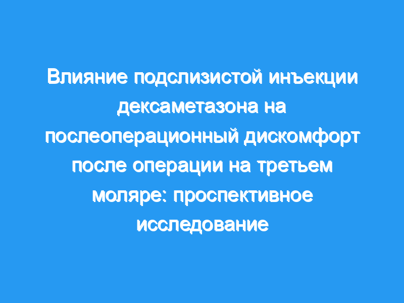 Целью данного исследования было оценить влияние подслизистого введения дексаметазона натрия фосфата на дискомфорт после операции на третьем моляре нижней челюсти. Пациенты и методы: Шестьдесят один последовательный пациент, нуждающийся в хирургическом удалении единственного пораженного третьего моляра нижней челюсти под местной анестезией, был случайным образом разделен на 3 группы. После начала местной анестезии экспериментальные группы получали дексаметазон в 2 разных дозах (4 или 8 мг) в виде подслизистой инъекции, а контрольная группа не получала никакого препарата. Соблюдались стандартные хирургические и обезболивающие протоколы. Максимальное межзубное расстояние и контуры лица измеряли в исходном состоянии и на 2-й и 7-й дни после операции. Боль объективно измеряли путем подсчета количества необходимых таблеток анальгетика. Восприятие пациентами тяжести симптомов оценивалось с помощью последующего опросника (шкала PoSSe).