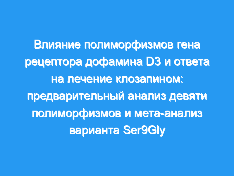 В нашем мета-анализе мы сообщаем о негативной, но последовательной тенденции в отдельных исследованиях для аллеля DRD3 Ser и плохой реакции CLZ.