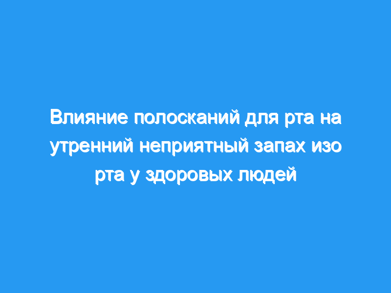 Во время сна размножение бактерий полости рта ответственно за выделение вредных газов при утреннем дыхании даже у здоровых людей. Таким образом, целью данного исследования была оценка ингибирующего неприятный запах изо рта эффекта четырех коммерчески доступных ополаскивателей для рта (0,03% триклозана, 0,12% хлоргексидина глюконата, 0,05% цетилпиридиния хлорида и эфирных масел) на утреннее дыхание по сравнению с положительным и отрицательным контролем. Метод: Было проведено шестиэтапное двойное слепое перекрестное рандомизированное исследование с участием 12 студентов-стоматологов со здоровым пародонтом, которые воздерживались от механического контроля зубного налета в течение 4-дневного периода. Испытуемых проинструктировали полоскать два раза в день назначенным средством в течение каждого периода. Использовались пятнадцатидневные интервалы вымывания. Перед профессиональным удалением зубного налета и налета с языка (базовый уровень) утреннее дыхание оценивалось по уровню летучих соединений серы (VSCs), измеренному с помощью сульфидного монитора. Через 4 дня регистрировали VSC и индекс зубного налета (PI).
