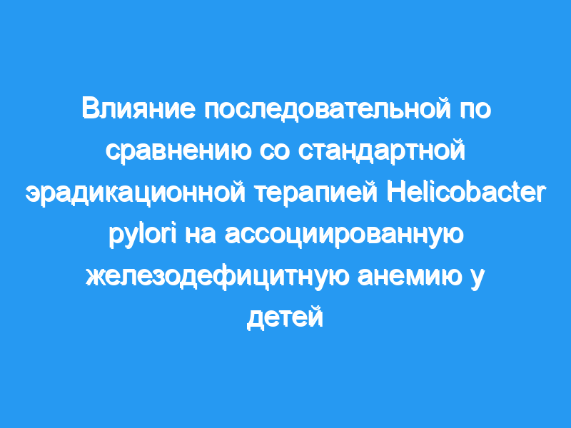 Нет существенной разницы в показателях эрадикации H. pylori между последовательной и стандартной терапией у детей. Кроме того, не было обнаружено существенной взаимосвязи между эрадикационной терапией и сывороточным ферритином. Необходимы дальнейшие исследования, включающие больше маркеров дефицита железа, чтобы точно оценить эту взаимосвязь.