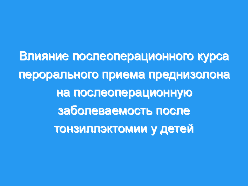 Университетская больница и частная больница. Субъекты и методы: Авторы сравнили 5-дневный курс перорального приема преднизолона с плацебо у детей (3-16 лет), перенесших тонзиллэктомию, чтобы оценить влияние на послеоперационную боль, тошноту и рвоту и возвращение к нормальной функции. Они также оценили влияние кортикостероидов на продолжительность сна и аспекты качества сна.