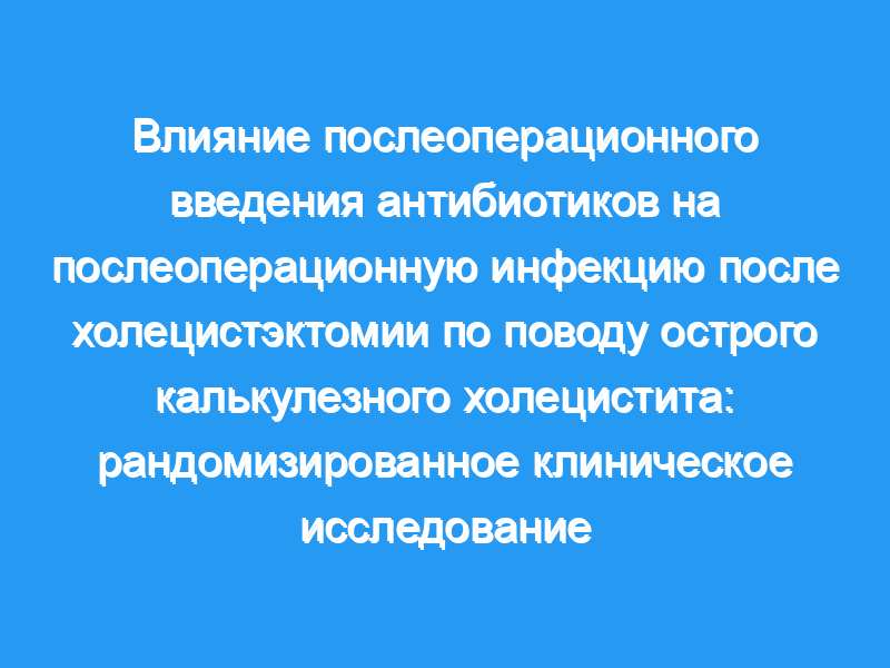 Анализ предполагаемого намерения лечить 414 пациентов показал, что частота послеоперационных инфекций составила 17% (35 из 207) в группе без лечения и 15% (31 из 207) в группе антибиотиков (абсолютная разница, 1,93%, 95% ДИ, -8,98% до 5,12%). В анализе по протоколу, в котором приняли участие 338 пациентов, соответствующие показатели составили 13% (абсолютная разница 0,3%, 95% ДИ от -5,0% до 6,3%). Исходя из коэффициента неполноценности в 11%, отсутствие послеоперационного лечения антибиотиками не было связано с худшими исходами, чем лечение антибиотиками. Посевы желчи показали, что 60,9% были свободны от патогенов. Обе группы имели схожие исходы тяжести осложнений Клавиена: 195 пациентов (94,2%) в группе без лечения имели оценку от 0 до I и 2 пациента (0,97%) имели оценку от III до V, а 182 пациента (87,8%) в группе антибиотиков имели оценку от 0 до I и 4 пациента (1,93%) имели оценку от III до V. Выводы и актуальность: Среди пациентов с калькулезным холециститом легкой или средней степени тяжести, получавших предоперационные и интраоперационные антибиотики, отсутствие послеоперационного лечения амоксициллином и клавулановой кислотой не привело к увеличению частоты послеоперационных инфекций. Пробная регистрация: clinicaltrials.gov Идентификатор: NCT01015417.