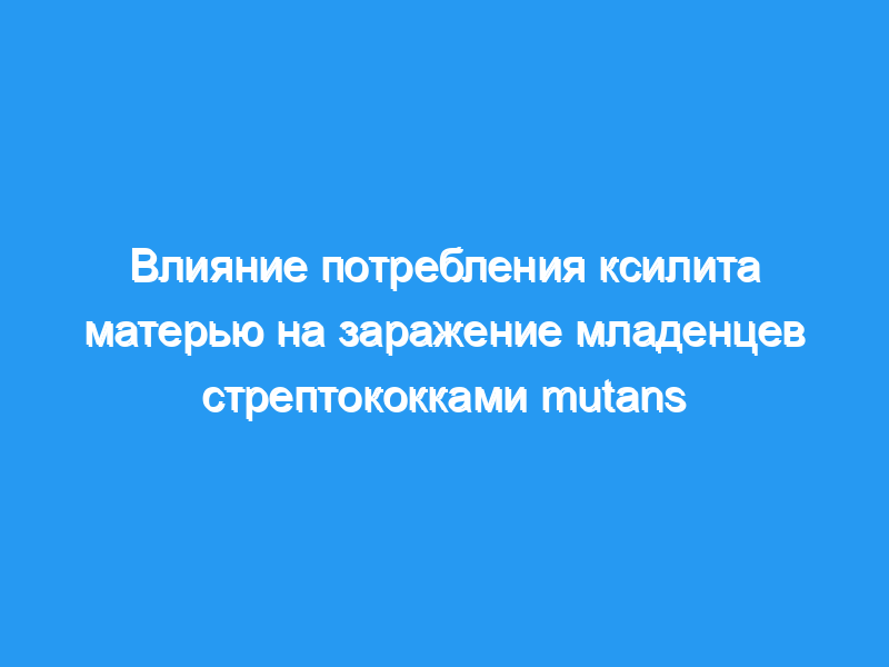 Сто шестьдесят девять пары мать-ребенок участвовали в двухлетнем исследовании, в котором изучалось, можно ли использовать потребление ксилита матерями для предотвращения передачи мутантного стрептококка от матери к ребенку.