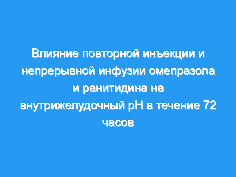 У здоровых людей и пациентов с кровоточащими пептическими язвами ранитидин и омепразол, вводимые парентерально, достигают высоких значений внутрижелудочного рН в первый день терапии. Однако данные об антисекреторном эффекте после первых 24 ч скудны. Кроме того, преимущество инфузии или инъекции омепразола остается недоказанным. Таким образом, мы сравнили антисекреторный эффект инфузии и инъекции высоких доз омепразола и ранитидина в течение критических первых 72 часов.