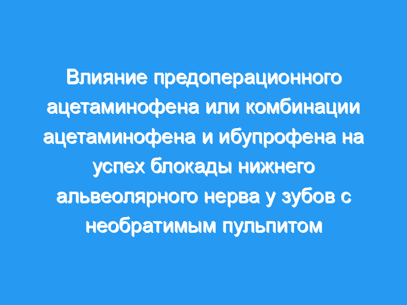 В этом исследовании сравнивалось предоперационное введение ацетаминофена или комбинации ацетаминофена и ибупрофена по сравнению с плацебо для потенциального повышения эффективности анестезии блокады нижнего альвеолярного нерва (IAN).