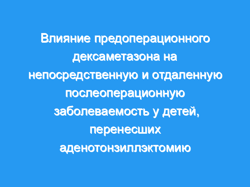 последствия: в этом двойном слепом, плацебо-контролируемом исследовании, мы исследовали эффективность одной большой дозы (1 мг/кг, максимальная доза 25 мг) предоперационной дексаметазона на posttonsillectomy послеоперационной тошноты и рвоты (потр), у детей 2-12 лет возраста, перенесших tonsillectom.