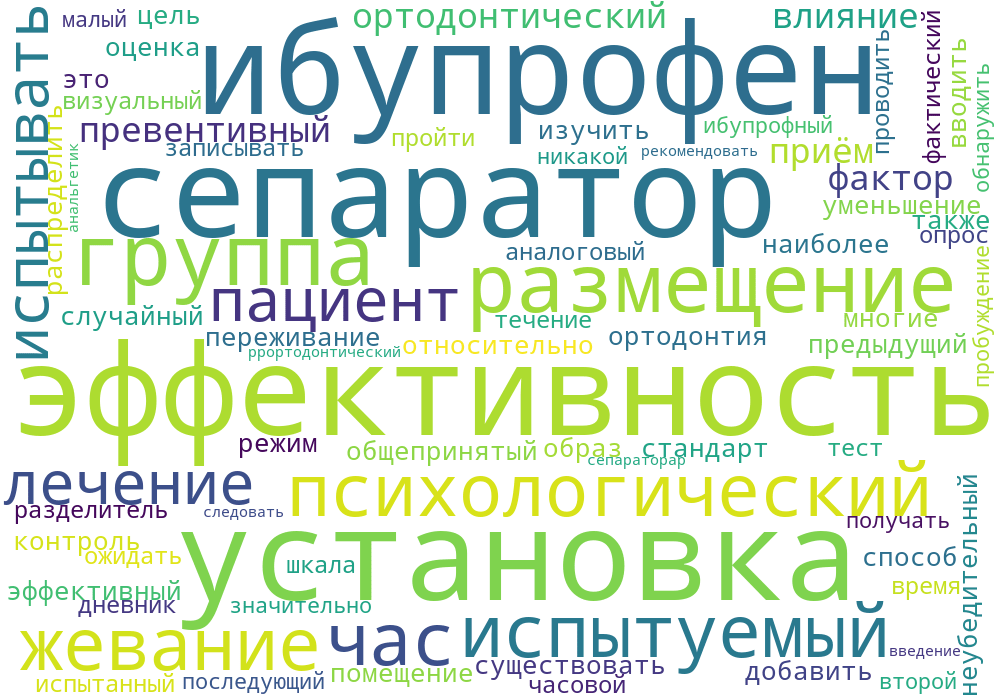 Испытуемые были случайным образом распределены в группу А, 400 мг ибупрофена за 1 час до размещения сепаратора (D1), через 3 часа после размещения (D2) и через 7 часов после размещения (D3), группа В, плацебо в D1, 400 мг ибупрофена в D2 и D3, или группа C, плацебо в D1, D2 и D3. Перед помещением в разделитель испытуемые прошли 2 психологических опроса, тест на эффективность жевания и визуальную аналоговую шкалу ожидаемой боли и испытанной боли во время теста на эффективность жевания. После размещения испытуемые записывали свою фактическую боль, вели дневник боли в течение 24 часов после установки сепаратора и проводили 24-часовой последующий тест на эффективность жевания.