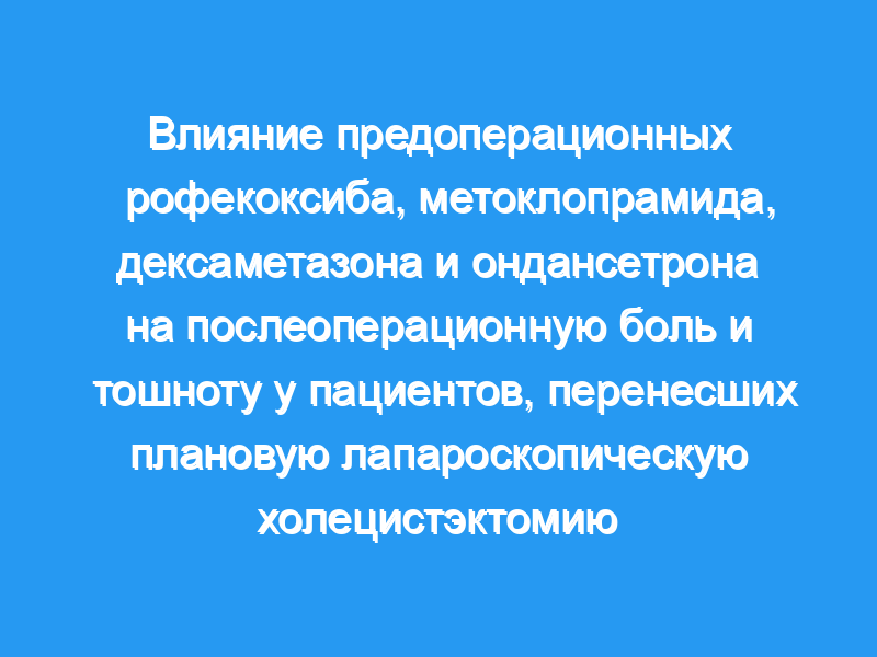На сегодняшний день ни в одном исследовании не оценивалось комбинированное влияние рофекоксиба, метоклопрамида, дексаметазона и Ондансетрона на послеоперационную боль и тошноту у пациентов, перенесших лапароскопическую холецистэктомию (ЛХ).