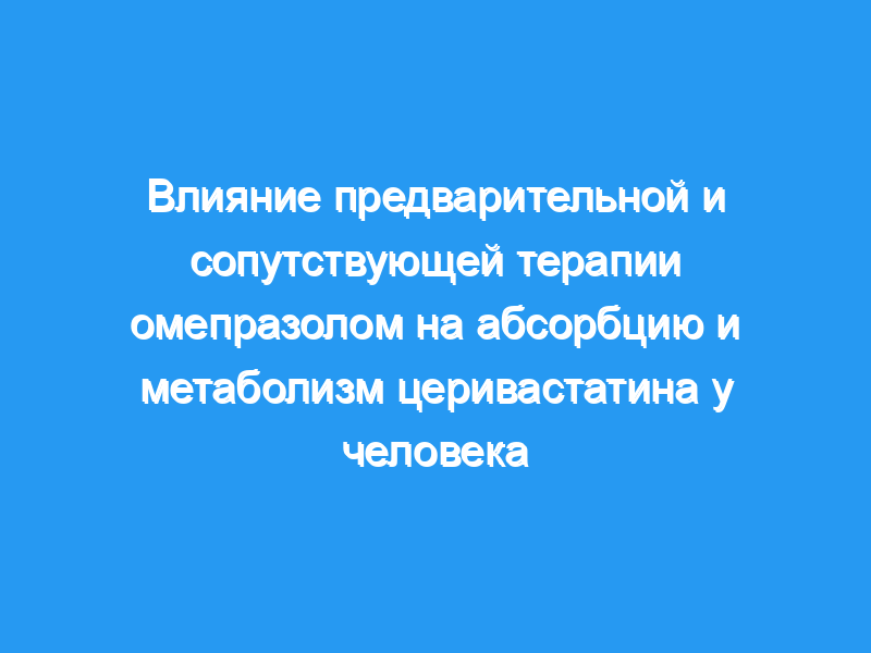 Церивастатин, новый ингибитор ГМГ-КоА-редуктазы, выводится исключительно путем биотрансформации, опосредованной цитохромом Р450, и последующей экскреции метаболитов с желчью и почками. Представленное исследование было проведено с целью определения влияния ингибитора секреции желудочной кислоты омепразола на биодоступность и фармакокинетику церивастатина. Способ: В контролируемом, рандомизированном, не слепом двустороннем перекрестном исследовании 12 здоровым мужчинам вводили однократные пероральные дозы 0,3 мг церивастатина натощак либо отдельно, либо вместе с 20 мг омепразола после 4-дневного предварительного лечения пероральным приемом 20 мг омепразола один раз в день.
