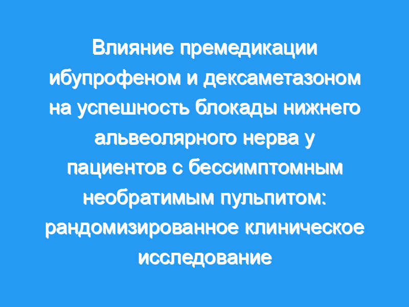 Премедикация дексаметазоном увеличила вероятность успешного проведения IANB при молярах нижней челюсти с бессимптомным необратимым пульпитом.