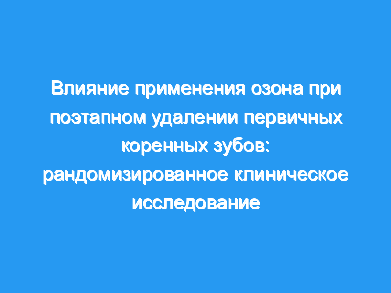 Целью этого рандомизированного контролируемого двойного слепого клинического исследования с тремя параллельными группами было изучение клинических и микробиологических эффектов применения озона при поэтапном удалении первичных коренных зубов.