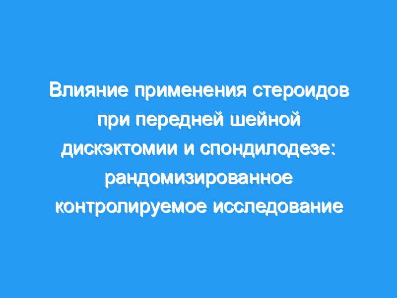 Авторы провели проспективное рандомизированное двойное слепое контролируемое исследование влияния стероидов на глотание, дыхательные пути и артродез, связанные с многоуровневой реконструкцией передней шейки матки у пациентов, которые проходили ACDF в медицинском центре Олбани в период с 2008 по 2012 год. Целью этого исследования было определить, улучшает ли периоперационное применение стероидов периоперационную дисфагию и отек дыхательных путей.