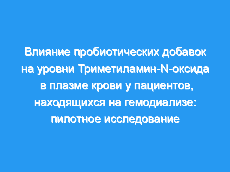 Цель исследования целью этого пилотного исследования была оценка влияния пробиотических добавок в течение 3 месяцев на уровень TMAO в плазме крови у пациентов с ХБП, находящихся на гемодиализе (ГД). Рандомизированное двойное слепое исследование было проведено у 21 пациента [54,8 ± 10,4 года, девять мужчин, ИМТ 26,1 ± 4,8 кг/м2, продолжительность диализа 68,5 (34,2-120,7) месяцев]. Десять пациентов были случайным образом распределены в группу плацебо и 11 в группу пробиотиков [три капсулы, в общей сложности 9 × 1013 колониеобразующих единиц в день Streptococcus thermophilus (KB19), Lactobacillus acidophilus (KB27) и Bifidobacteria longum (KB31). Уровни TMAO, холина и бетаина в плазме крови измеряли методом LC-MS/MS на исходном уровне и через 3 месяца.