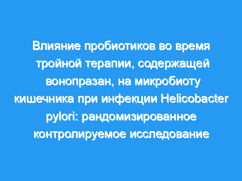 Пробиотики полезны для пациентов с инфекциями Helicobacter pylori, модулируя микробиоту кишечника. Биофермин-Р (BFR) представляет собой препарат молочнокислых бактерий с множественной устойчивостью к антибиотикам Enterococcus faecium 129 BIO 3B-R и эффективен для нормализации микробиоты кишечника при использовании в комбинации с антибиотиками. Целью этого исследования было определить влияние BFR в комбинации с терапией на основе вонопразана (VPZ) на микробиоту кишечника.