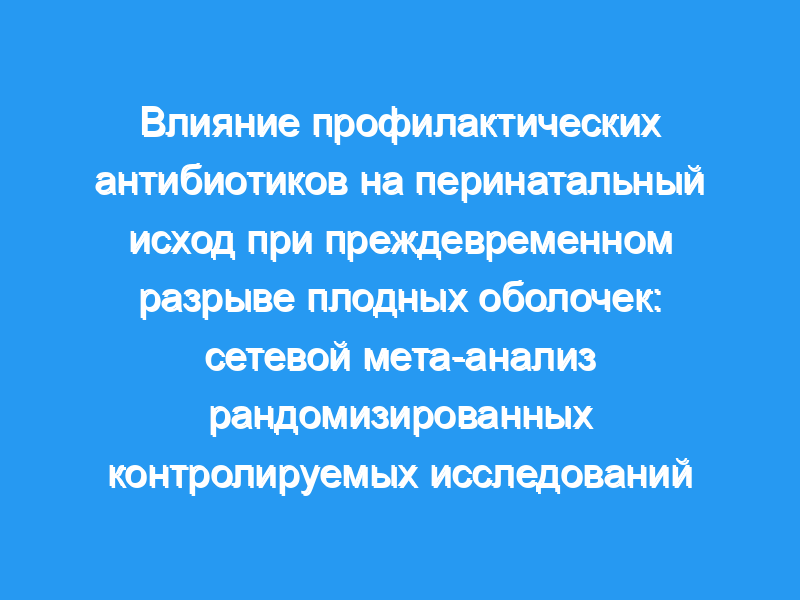 Профилактические антибиотики обычно рекомендуются при преждевременном разрыве плодных оболочек (PPROM), но существует множество потенциальных методов лечения и мало сравнительной информации. Целью этого сетевого мета-анализа было сравнить эффективность различных схем лечения антибиотиками в отношении перинатальных исходов и оценить качество имеющихся фактических данных.