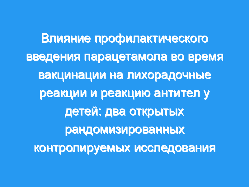 В двух последовательных (первичных и повторных) рандомизированных, контролируемых, открытых исследованиях вакцинации было зарегистрировано 459 здоровых младенцев из десяти центров Чешской Республики. Младенцы были рандомизированы с помощью сгенерированного компьютером списка рандомизации для получения трех профилактических доз парацетамола каждые 6-8 ч в течение первых 24 ч (n=226) или без профилактического парацетамола (n=233) после каждой вакцинации десятивалентной пневмококковой нетипируемой вакциной Haemophilus influenzae, конъюгированной с белком D (PHiD-CV) вводили одновременно с шестивалентными дифтерийно-столбнячными 3-компонентными бесклеточными коклюшно-гепатитными В-инактивированными полиовирусами типов 1, 2 и 3-H influenzae типа b (DTPa-HBV-IPV/Hib) и пероральными человеческими ротавирусными вакцинами. Основной целью в обоих исследованиях было снижение фебрильных реакций до 38,0°C или выше в общей вакцинированной когорте. Второй целью была оценка иммуногенности в когорте в соответствии с протоколом. Эти исследования зарегистрированы в ClinicalTrials.gov , номера NCT00370318 и NCT00496015. Результаты: Лихорадка выше 39,5°C была редкостью в обеих группах (после первичной: один из 226 участников [<1%] в группе профилактического парацетамола против трех из 233 [1%] в группе без профилактического парацетамола, после бустера: трое из 178 [2%] против двух из 172 [1%]). Процент детей с температурой 38°C или выше после, по крайней мере, одной дозы был значительно ниже в группе профилактического парацетамола (94/226 [42%] после первичной вакцинации и 64/178 [36%] после повторной вакцинации), чем в группе без профилактического парацетамола (154/233 [66%] после первичной вакцинации и 100/172 [58%] после повторной вакцинации). Средние геометрические концентрации антител (GMCs) были значительно ниже в группе профилактического парацетамола, чем в группе без профилактического парацетамола после первичной вакцинации для всех десяти серотипов пневмококковой вакцины, белка D, антиполирибозил-рибитол фосфата, антидифтерийного, противостолбнячного и антипертактина. После повышения в группе профилактического парацетамола сохранялось более низкое содержание GMC антител к противостолбняку, белку D и всем серотипам пневмококка, кроме 19F. Интерпретация: Хотя лихорадочные реакции значительно уменьшились, профилактическое введение жаропонижающих препаратов во время вакцинации не следует регулярно рекомендовать, поскольку реакция антител на несколько вакцинных антигенов была снижена. Финансирование: GlaxoSmithKline Biologicals (Бельгия).